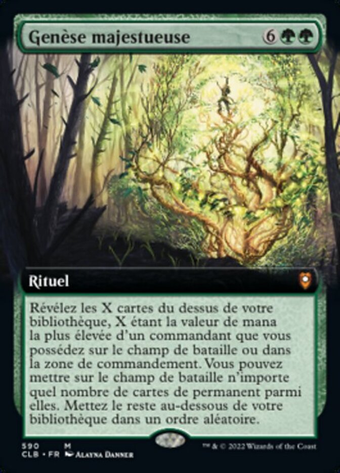 | Rules | Reveal the top X cards of your library, where X is the greatest mana value of a commander you own on the battlefield or in the command zone. You may put any number of a permanent cards from among them onto the battlefield. Put the rest on the bottom of your library in a random order. |