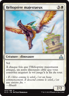 | Rules | Flying Whenever Majestic Heliopterus attacks, another target Dinosaur you control gains flying until end of turn. |