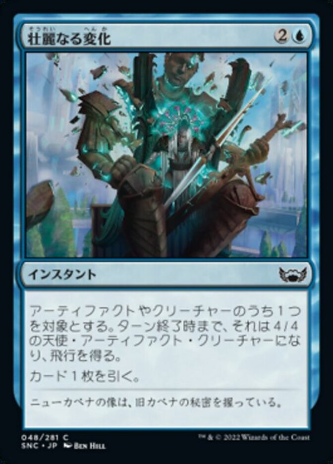 | Rules | Until end of turn, target artifact or creature becomes a 4/4 Angel artifact creature and gains flying. Draw a card. |