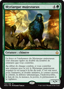 | Rules | Majestic Myriarch's power and toughness are each equal to twice the number of creatures you control. At the beginning of each combat, Majestic Myriarch gains flying until end of turn if you control a creature with flying. The same is true for first strike, double strike, deathtouch, haste, hexproof, indestructible, lifelink, menace, reach, trample, and vigilance. |