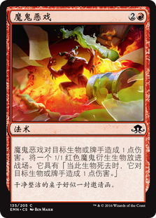 | Rules | Make Mischief deals 1 damage to any target. Create a 1/1 red Devil creature token. It has "When this creature dies, it deals 1 damage to any target." |