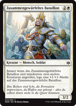 | Rules | Whenever Makeshift Battalion and at least two other creatures attack, put a +1/+1 counter on Makeshift Battalion. |