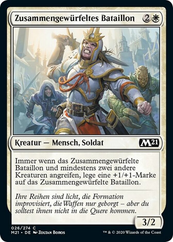 | Rules | Whenever Makeshift Battalion and at least two other creatures attack, put a +1/+1 counter on Makeshift Battalion. |