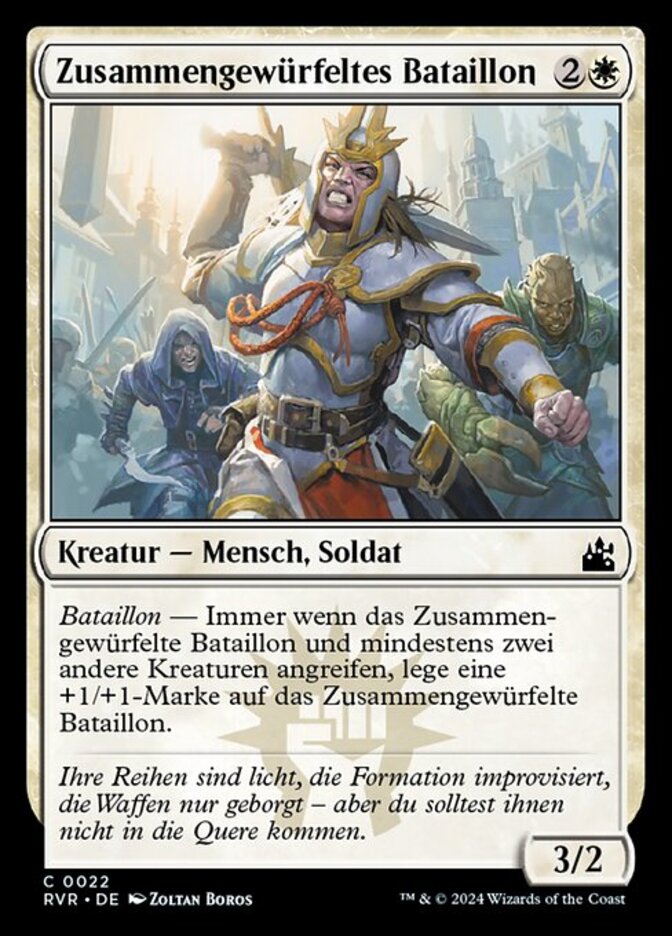 | Rules | Whenever Makeshift Battalion and at least two other creatures attack, put a +1/+1 counter on Makeshift Battalion. |