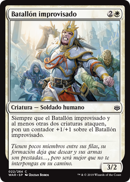 | Rules | Whenever Makeshift Battalion and at least two other creatures attack, put a +1/+1 counter on Makeshift Battalion. |