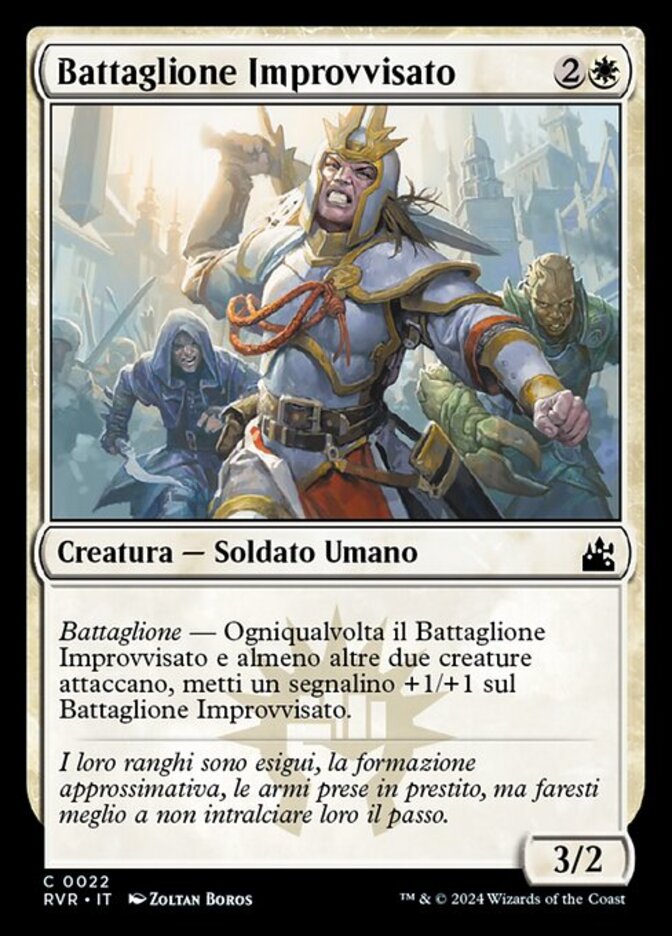 | Rules | Whenever Makeshift Battalion and at least two other creatures attack, put a +1/+1 counter on Makeshift Battalion. |