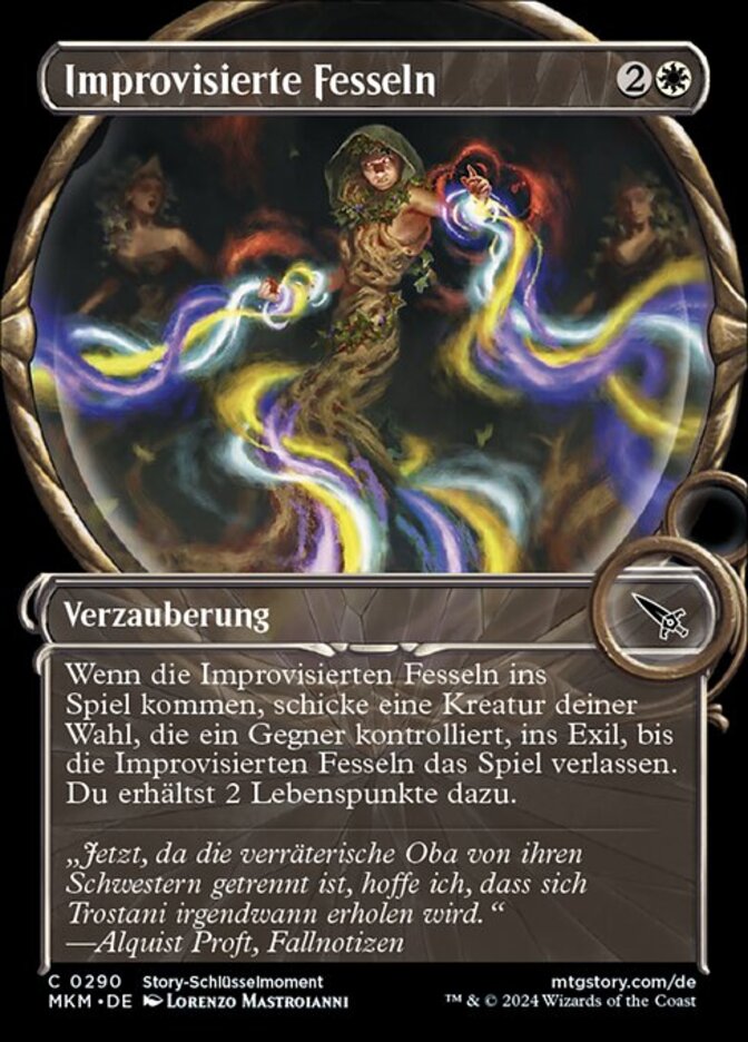 | Rules | When Makeshift Binding enters the battlefield, exile target creature an opponent controls until Makeshift Binding leaves the battlefield. You gain 2 life. |