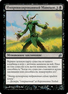 | Rules | Return target creature card from your graveyard to the battlefield with a mannequin counter on it. For as long as that creature has a mannequin counter on it, it has "When this creature becomes the target of a spell or ability, sacrifice it." |