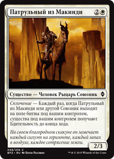 | Rules | Rally — Whenever Makindi Patrol or another Ally enters the battlefield under your control, creatures you control gain vigilance until end of turn. |