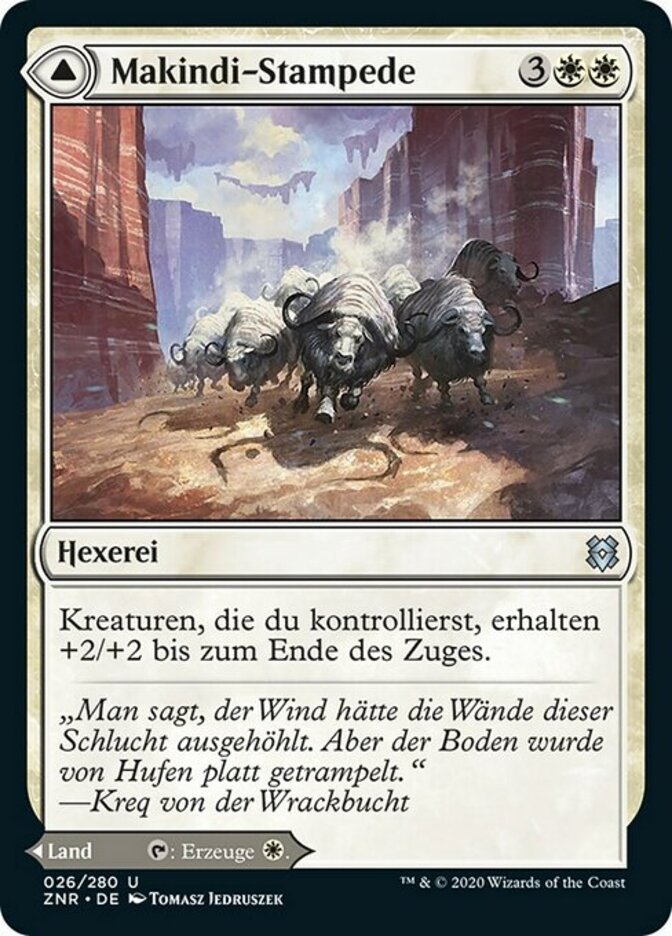 | Rules | Creatures you control get +2/+2 until end of turn. // Makindi Mesas enters the battlefield tapped. : Add . |