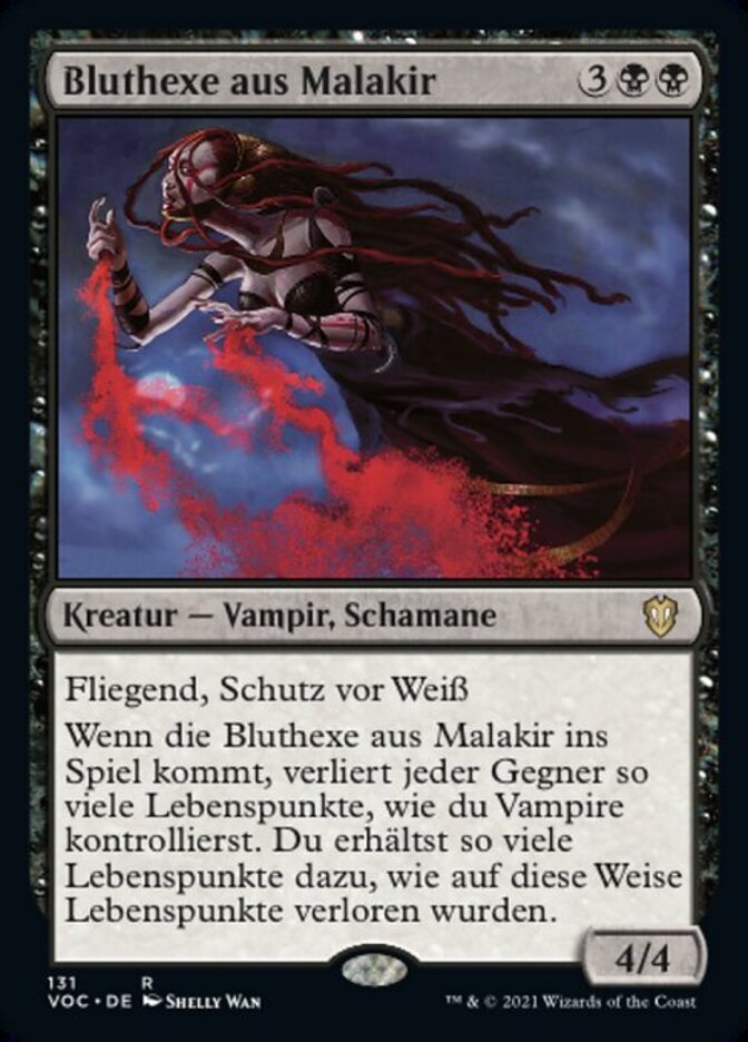 | Rules | Flying, protection from white When Malakir Bloodwitch enters the battlefield, each opponent loses life equal to the number of Vampires you control. You gain life equal to the life lost this way. |