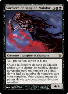 | Rules | Flying, protection from white When Malakir Bloodwitch enters the battlefield, each opponent loses life equal to the number of Vampires you control. You gain life equal to the life lost this way. |