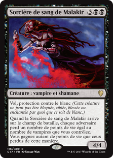 | Rules | Flying, protection from white When Malakir Bloodwitch enters the battlefield, each opponent loses life equal to the number of Vampires you control. You gain life equal to the life lost this way. |