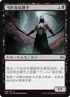 | Rules | Whenever a creature an opponent controls dies, put a +1/+1 counter on Malakir Cullblade. |