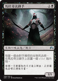 | Rules | Whenever a creature an opponent controls dies, put a +1/+1 counter on Malakir Cullblade. |