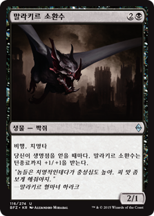 | Rules | Flying, deathtouch Whenever you gain life, Malakir Familiar gets +1/+1 until end of turn. |