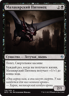 | Rules | Flying, deathtouch Whenever you gain life, Malakir Familiar gets +1/+1 until end of turn. |