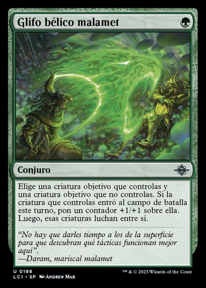 | Rules | Choose target creature you control and target creature you don't control. If the creature you control entered the battlefield this turn, put a +1/+1 counter on it. Then those creatures fight each other. |