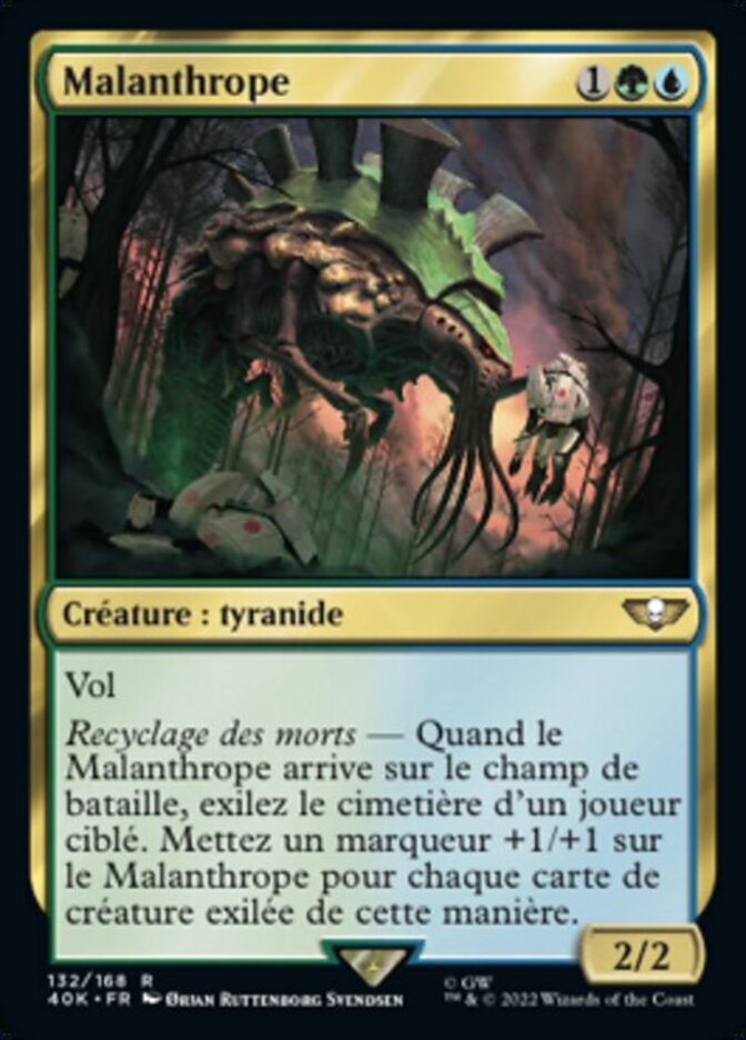 | Rules | Flying Scavenge the Dead — When Malanthrope enters the battlefield, exile target player's graveyard. Put a +1/+1 counter on Malanthrope for each creature card exiled this way. |