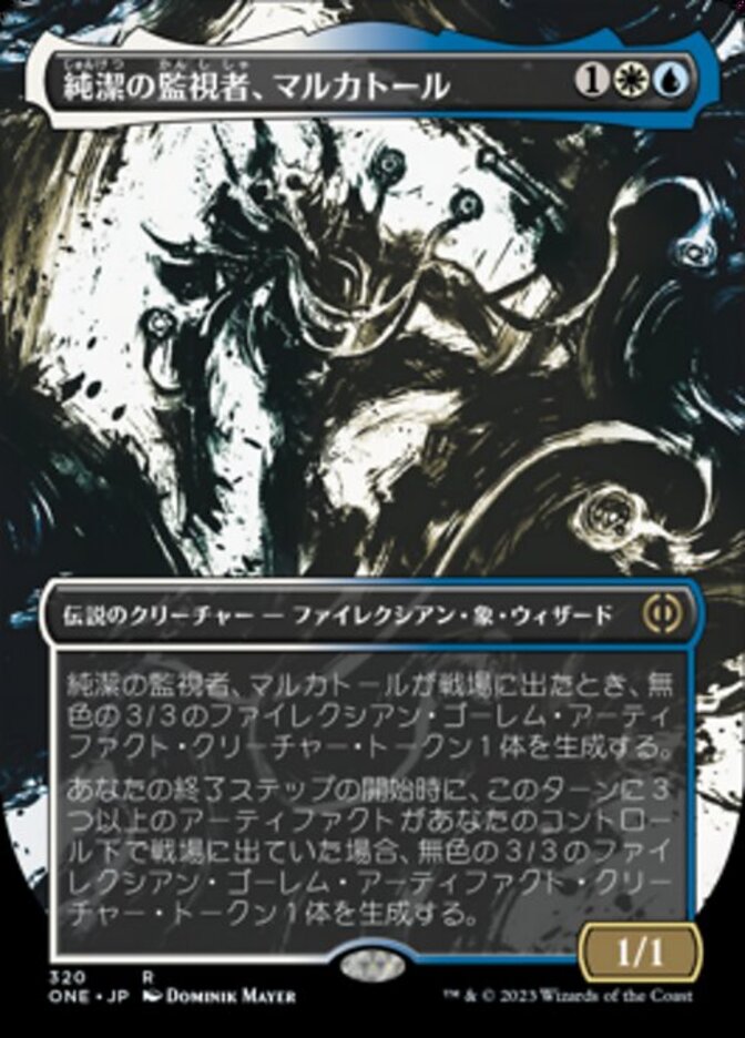 | Rules | When Malcator, Purity Overseer enters the battlefield, create a 3/3 colorless Phyrexian Golem artifact creature token. At the beginning of your end step, if three or more artifacts entered the battlefield under your control this turn, create a 3/3 colorless Phyrexian Golem artifact creature token. |