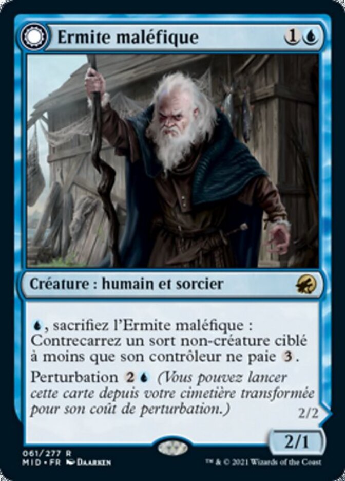 | Rules | , Sacrifice Malevolent Hermit: Counter target noncreature spell unless its controller pays . Disturb (You may cast this card from your graveyard transformed for its disturb cost.) // Flying Noncreature spells you control can't be countered. If Benevolent Geist would be put into a graveyard from anywhere, exile it instead. |