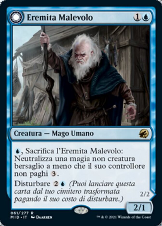| Rules | , Sacrifice Malevolent Hermit: Counter target noncreature spell unless its controller pays . Disturb (You may cast this card from your graveyard transformed for its disturb cost.) // Flying Noncreature spells you control can't be countered. If Benevolent Geist would be put into a graveyard from anywhere, exile it instead. |