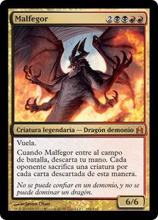 | Rules | Flying When Malfegor enters the battlefield, discard your hand. Each opponent sacrifices a creature for each card discarded this way. |
