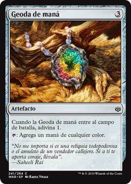| Rules | When Mana Geode enters the battlefield, scry 1. : Add one mana of any color. |