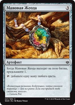 | Rules | When Mana Geode enters the battlefield, scry 1. : Add one mana of any color. |