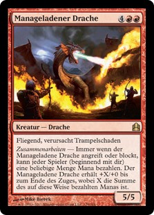 | Rules | Flying, trample Join forces — Whenever Mana-Charged Dragon attacks or blocks, each player starting with you may pay any amount of mana. Mana-Charged Dragon gets +X/+0 until end of turn, where X is the total amount of mana paid this way. |