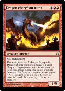 | Rules | Flying, trample Join forces — Whenever Mana-Charged Dragon attacks or blocks, each player starting with you may pay any amount of mana. Mana-Charged Dragon gets +X/+0 until end of turn, where X is the total amount of mana paid this way. |