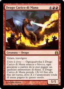 | Rules | Flying, trample Join forces — Whenever Mana-Charged Dragon attacks or blocks, each player starting with you may pay any amount of mana. Mana-Charged Dragon gets +X/+0 until end of turn, where X is the total amount of mana paid this way. |
