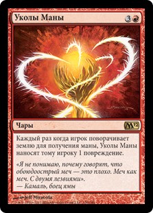 | Rules | Whenever a player taps a land for mana, Manabarbs deals 1 damage to that player. |