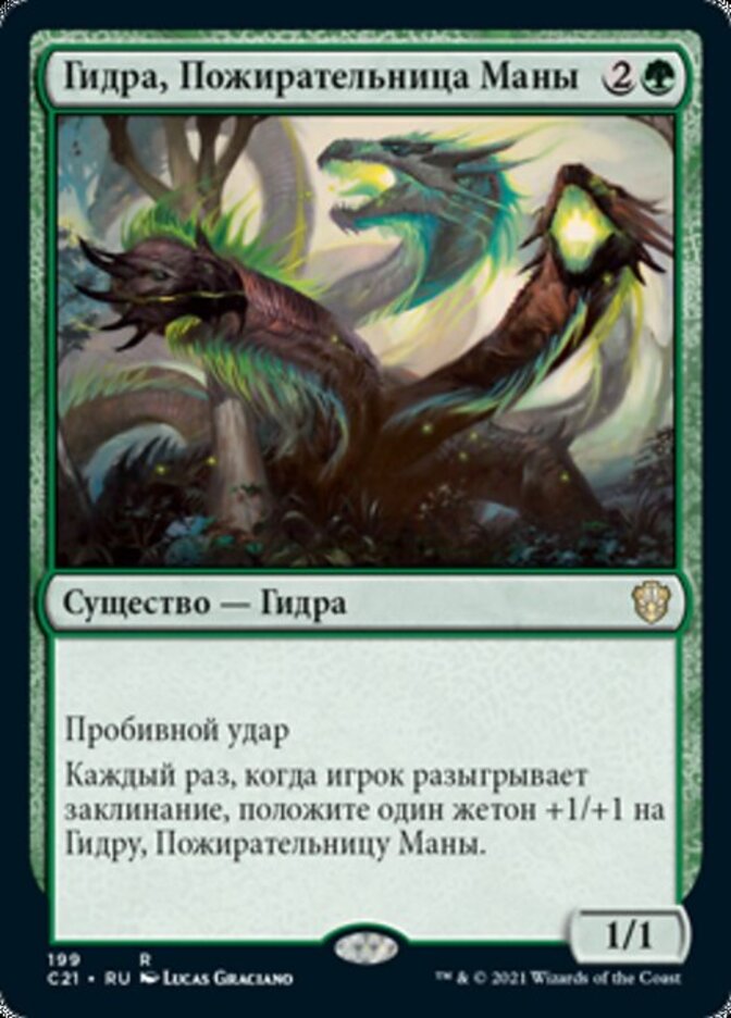 | Rules | Trample Whenever a player casts a spell, put a +1/+1 counter on Managorger Hydra. |