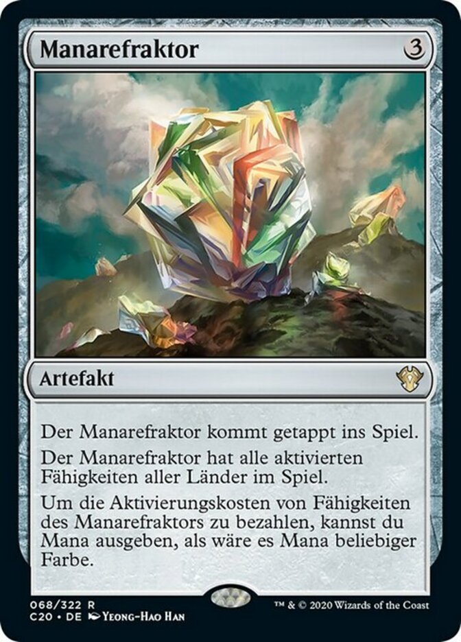 | Rules | Manascape Refractor enters the battlefield tapped. Manascape Refractor has all activated abilities of all lands on the battlefield. You may spend mana as though it were mana of any color to pay the activation costs of Manascape Refractor's abilities. |
