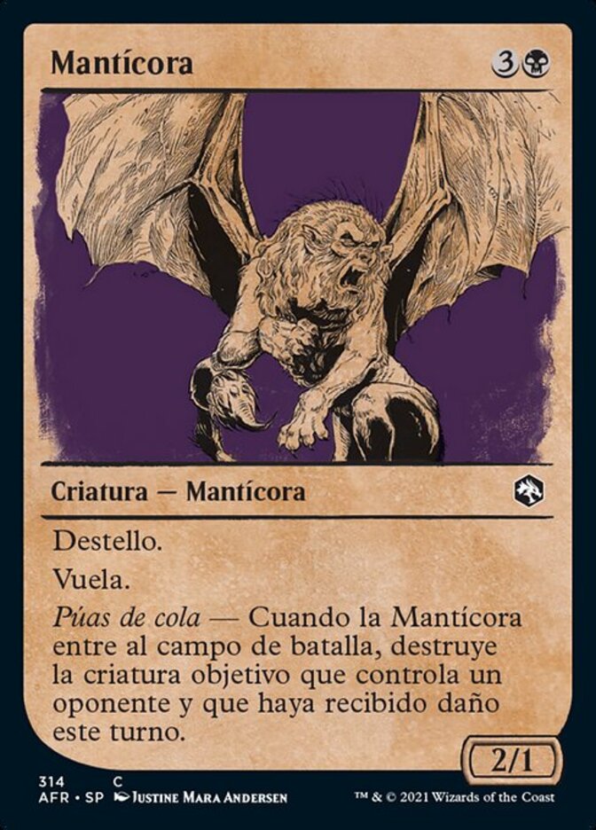| Rules | Flash Flying Tail Spikes — When Manticore enters the battlefield, destroy target creature an opponent controls that was dealt damage this turn. |