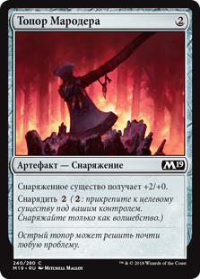 | Rules | Equipped creature gets +2/+0. Equip (: Attach to target creature you control. Equip only as a sorcery.) |