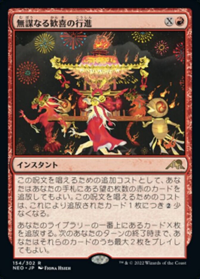 | Rules | As an additional cost to cast this spell, you may exile any number of red cards from your hand. This spell costs less to cast for each card exiled this way. Exile the top X cards of your library. You may play up to two of those cards until the end of your next turn. |