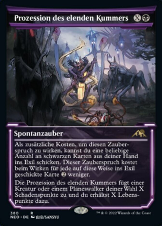 | Rules | As an additional cost to cast this spell, you may exile any number of black cards from your hand. This spell costs less to cast for each card exiled this way. March of Wretched Sorrow deals X damage to target creature or planeswalker and you gain X life. |