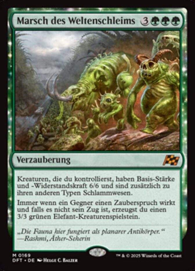 | Rules | Creatures you control have base power and toughness 6/6 and are Oozes in addition to their other types. Whenever an opponent casts a spell, if it's not their turn, you create a 3/3 green Elephant creature token. |