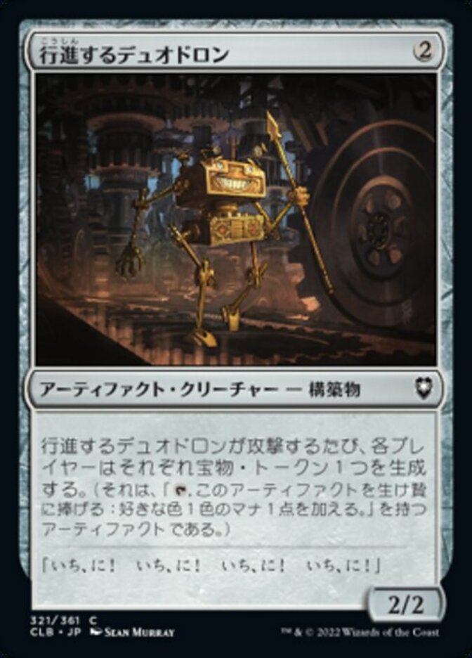 | Rules | Whenever Marching Duodrone attacks, each player creates a Treasure token. (It's an artifact with ", Sacrifice this artifact: Add one mana of any color.") |