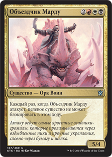 | Rules | Whenever Mardu Roughrider attacks, target creature can't block this turn. |