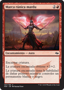 | Rules | Enchant creature Enchanted creature gets +2/+2. Enchanted creature has first strike as long as you control a white or black permanent. |