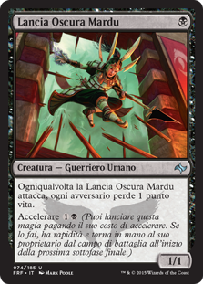 | Rules | Whenever Mardu Shadowspear attacks, each opponent loses 1 life. Dash (You may cast this spell for its dash cost. If you do, it gains haste, and it's returned from the battlefield to its owner's hand at the beginning of the next end step.) |