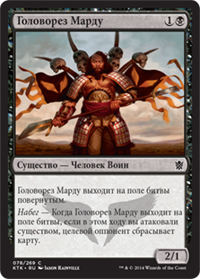 | Rules | Mardu Skullhunter enters the battlefield tapped. Raid — When Mardu Skullhunter enters the battlefield, if you attacked this turn, target opponent discards a card. |