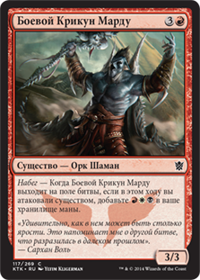 | Rules | Raid — When Mardu Warshrieker enters the battlefield, if you attacked this turn, add . |