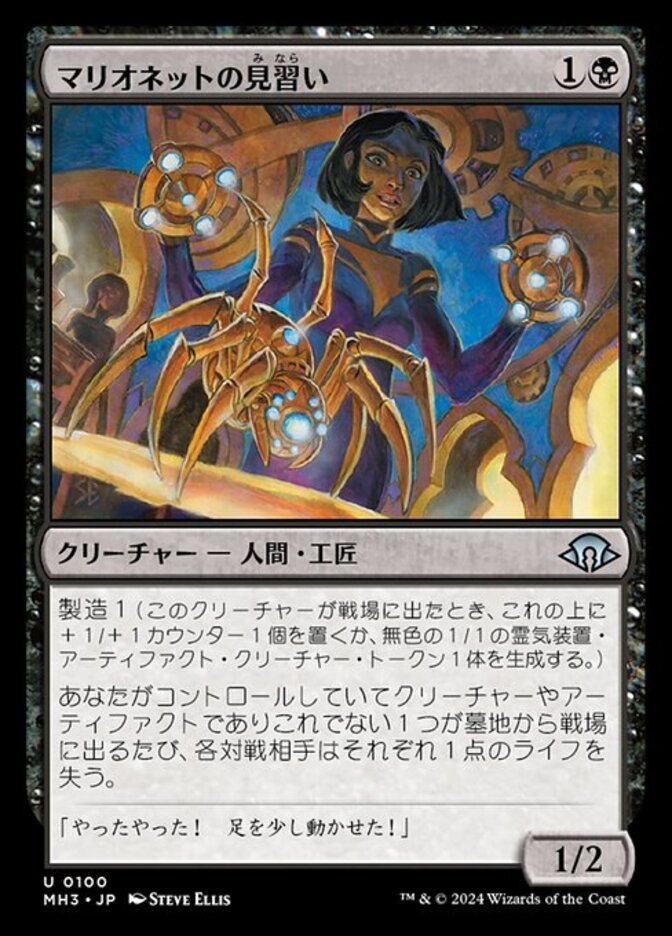 | Rules | Fabricate 1 (When this creature enters the battlefield, put a +1/+1 counter on it or create a 1/1 colorless Servo artifact creature token.) Whenever another creature or artifact you control is put into a graveyard from the battlefield, each opponent loses 1 life. |