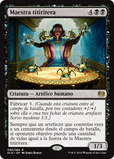 | Rules | Fabricate 3 (When this creature enters the battlefield, put three +1/+1 counters on it or create three 1/1 colorless Servo artifact creature tokens.) Whenever an artifact you control is put into a graveyard from the battlefield, target opponent loses life equal to Marionette Master's power. |
