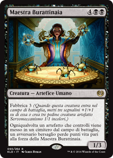 | Rules | Fabricate 3 (When this creature enters the battlefield, put three +1/+1 counters on it or create three 1/1 colorless Servo artifact creature tokens.) Whenever an artifact you control is put into a graveyard from the battlefield, target opponent loses life equal to Marionette Master's power. |