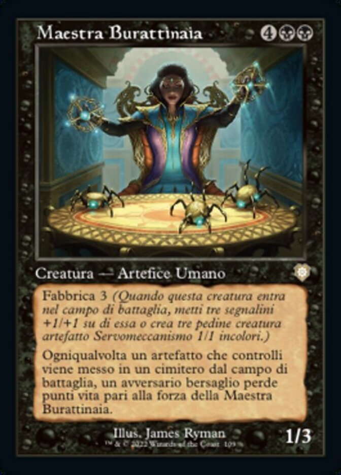 | Rules | Fabricate 3 (When this creature enters the battlefield, put three +1/+1 counters on it or create three 1/1 colorless Servo artifact creature tokens.) Whenever an artifact you control is put into a graveyard from the battlefield, target opponent loses life equal to Marionette Master's power. |